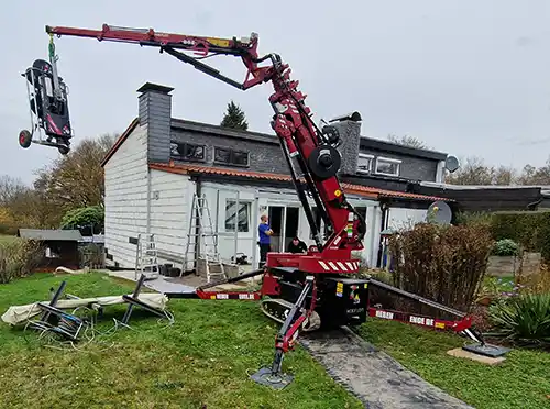 Mit Lkw-Ladekranen, Raupen-Minikranen und Glassauganlagen bieten wir flexible Alternativen zu den üblichen Standard-Containern. Besonders bei engen Zufahrten und sensiblen Einsatzorten zeigt sich unsere technische Stärke.