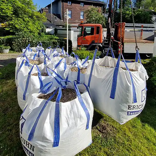 Big Bags und kleine Schuttmulden kombiniert mit Krantechnik für enge Räume